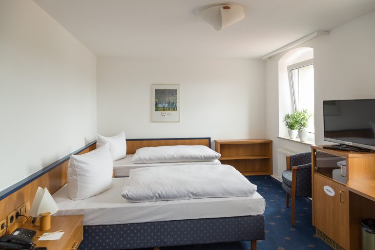 Zur Ausstattung gehören ein Flatscreen-TV (Skysender verfügbar), Zimmersafe, Minibar sowie WLAN. Parken auf dem Hotelparkplatz (nach Verfügbarkeit) rundet die Ausstattung ab. Frühstück ist inklusive!